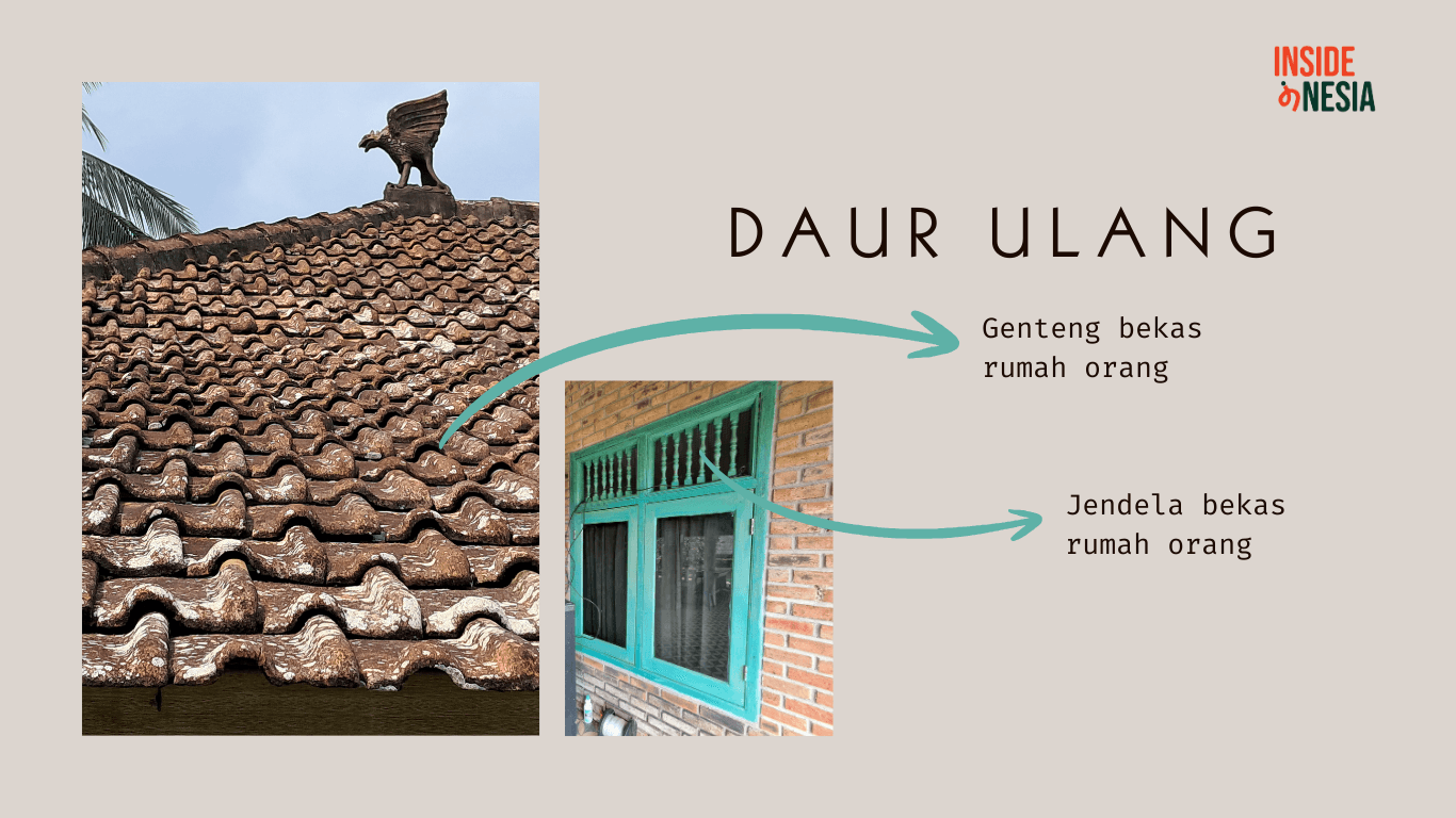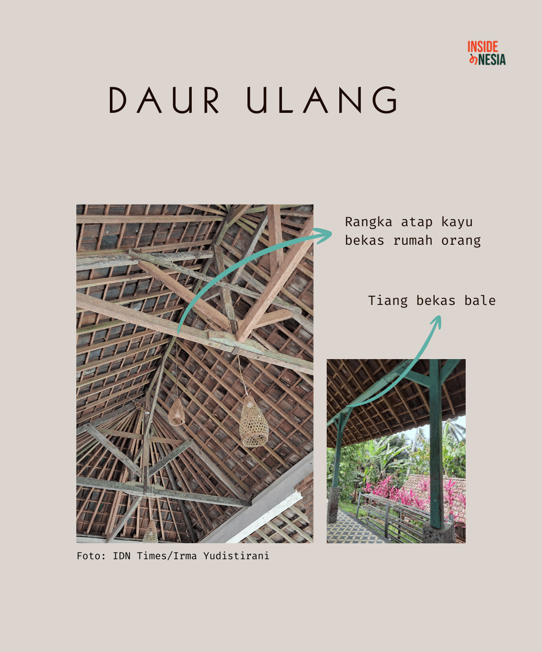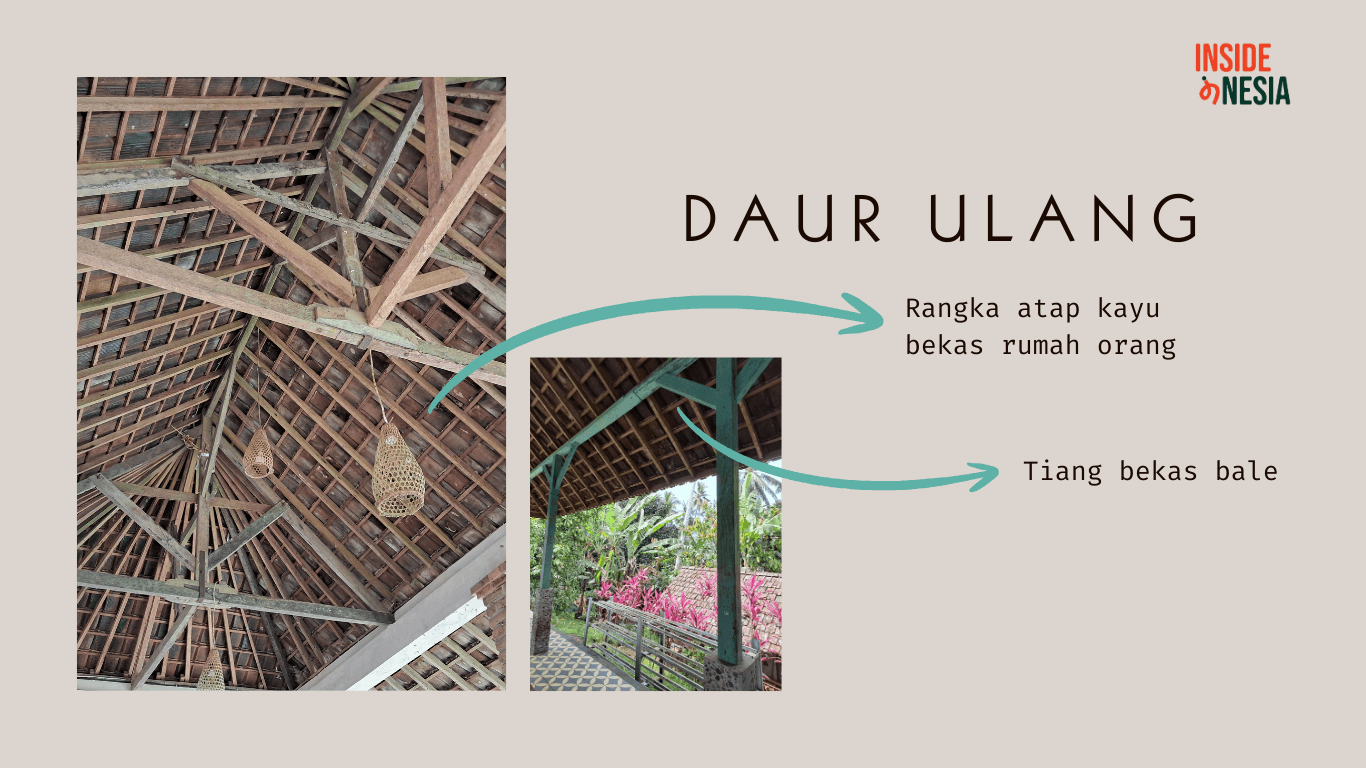 Wiartana pun menyarankan menggunakan bahan alam dan material sisa rumah atau industri. Harganya bisa lebih murah tanpa menghilangkan estetis. Tinggal mencari saja rumah-rumah lama, atau bongkaran rumah orang. Lalu tanyakan pada pemilik untuk meminta atau membeli genteng, kusen, jendela, atap, hingga tiang bekas bongkaran.