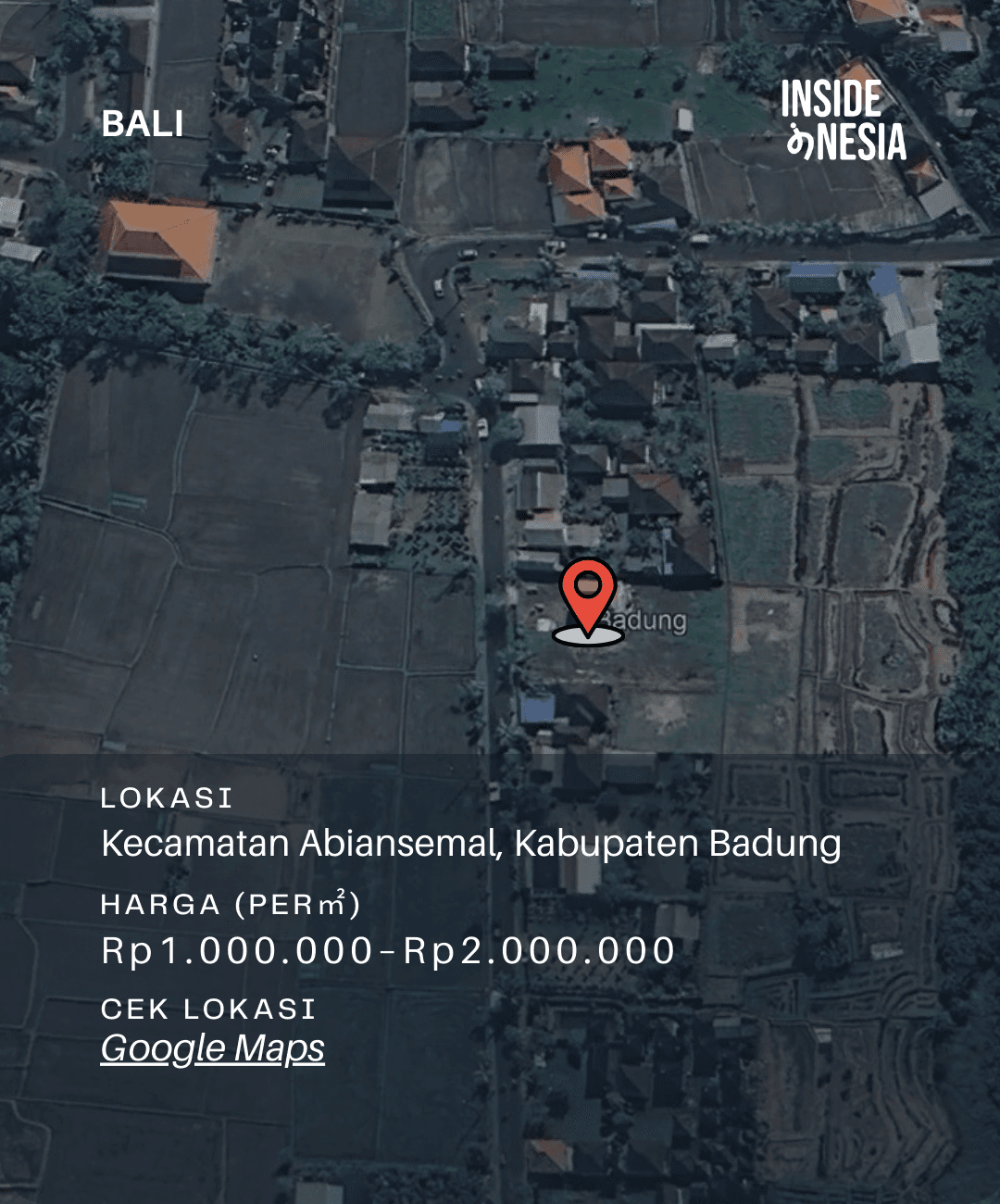 Di Bali, kawasan pinggiran Kecamatan Abiansemal, Kabupaten Badung dikenal cukup asri. Jarak ke pusat Kota Denpasar sekitar 11,1km atau 18 menit naik sepeda motor. Namun, harga lahannya mencapai Rp1 juta–Rp2 juta per meter persegi. Membeli tanah kosong seluas 100 meter persegi bakal membutuhkan dana hingga Rp200 juta. Harga ini setara dengan satu unit rumah subsidi.