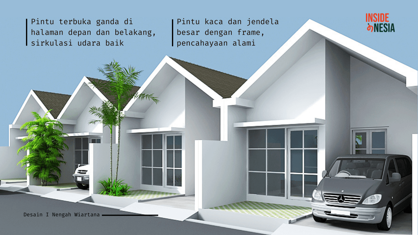 Ia juga menggunakan jenis pintu ganda di halaman depan dan belakang, sehingga sirkulasi udaranya sangat baik meski tanpa AC. Lalu di halaman belakang ada area terbuka mini yang mendukung mental di lahan sempit.