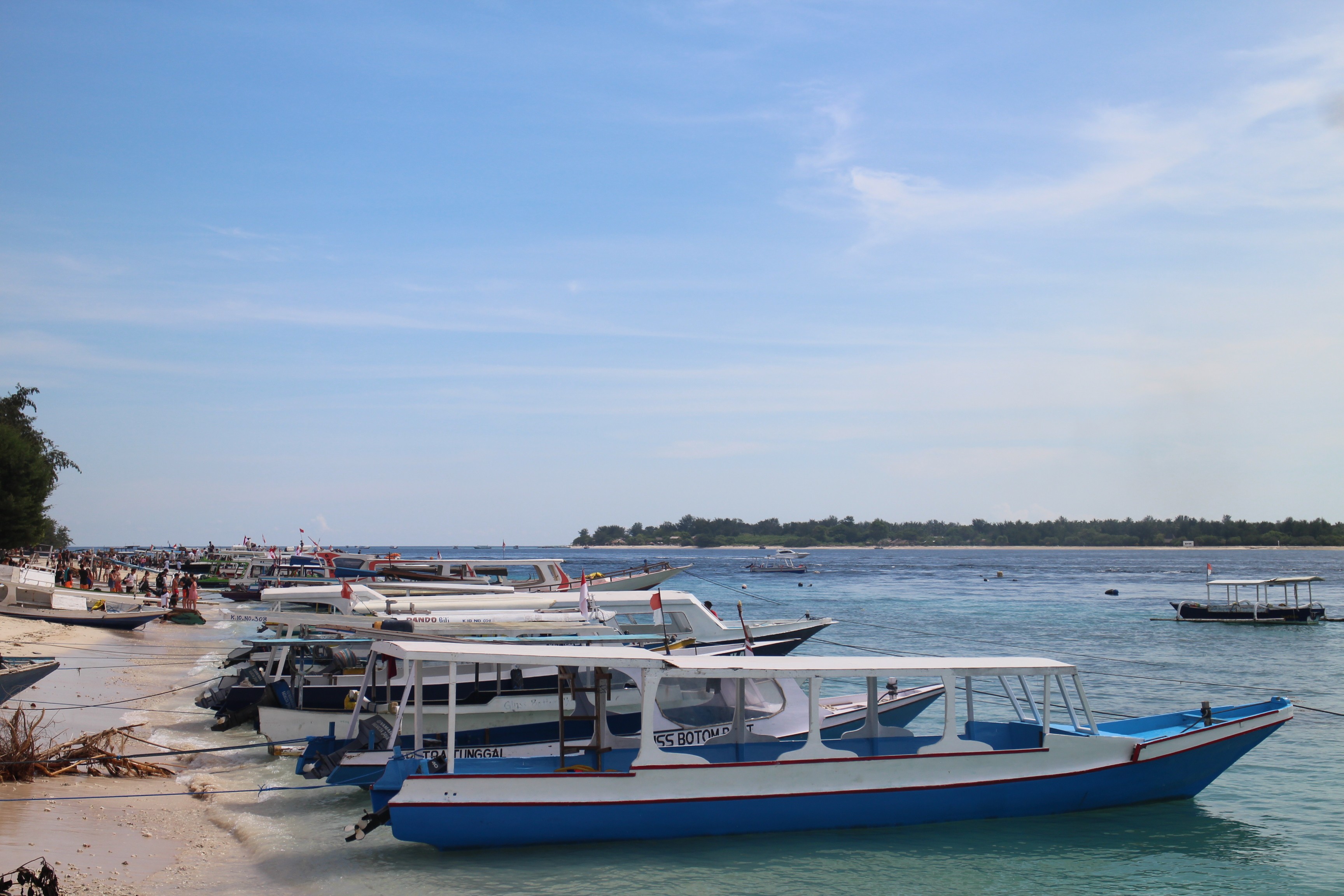 Sejumlah kapal bersandar di tepi pantai Gili Trawangan. (IDN Times/Linggauni)