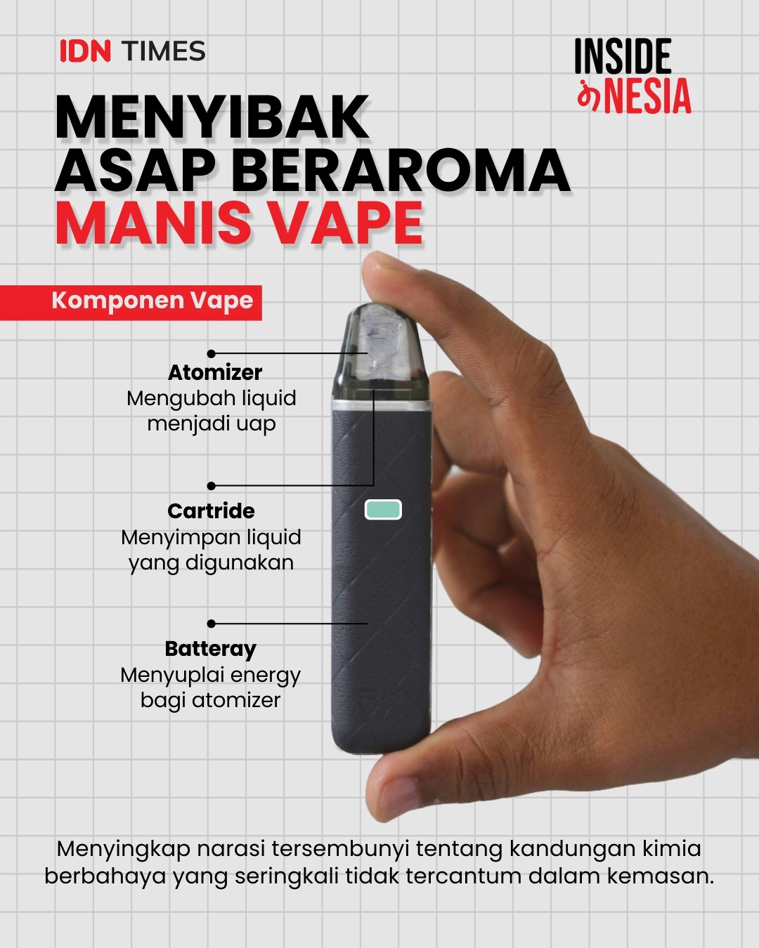 Tak semua yang berbentuk indah, aromanya harum, dan menggunakan rasa buah-buahan itu baik itu baik untuk tubuh manusia. Vape adalah salah satunya. Kemasan liquid vape dan aromanya kerap disandingkan dengan buah-buahan seperti mangga, anggur, strawberry, dan lain sebagainya. Namun tetap saja kandungan nikotin dan lainnya sebagainya itu tidak baik untuk kesehatan.